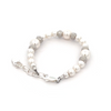 Sterling silver bracelet featuring beautiful simulated pearls with sparkling silver rondel accents. This looks beautiful and makes for a timeless keepsake and perfect baby gift, flower girl gift, or her first pearls! Each bracelet has an extension chain, so as the child grows you just move to the next link for a perfect fit. This bracelet is available in two sizes and is great for infants, babies, toddlers, and kids.