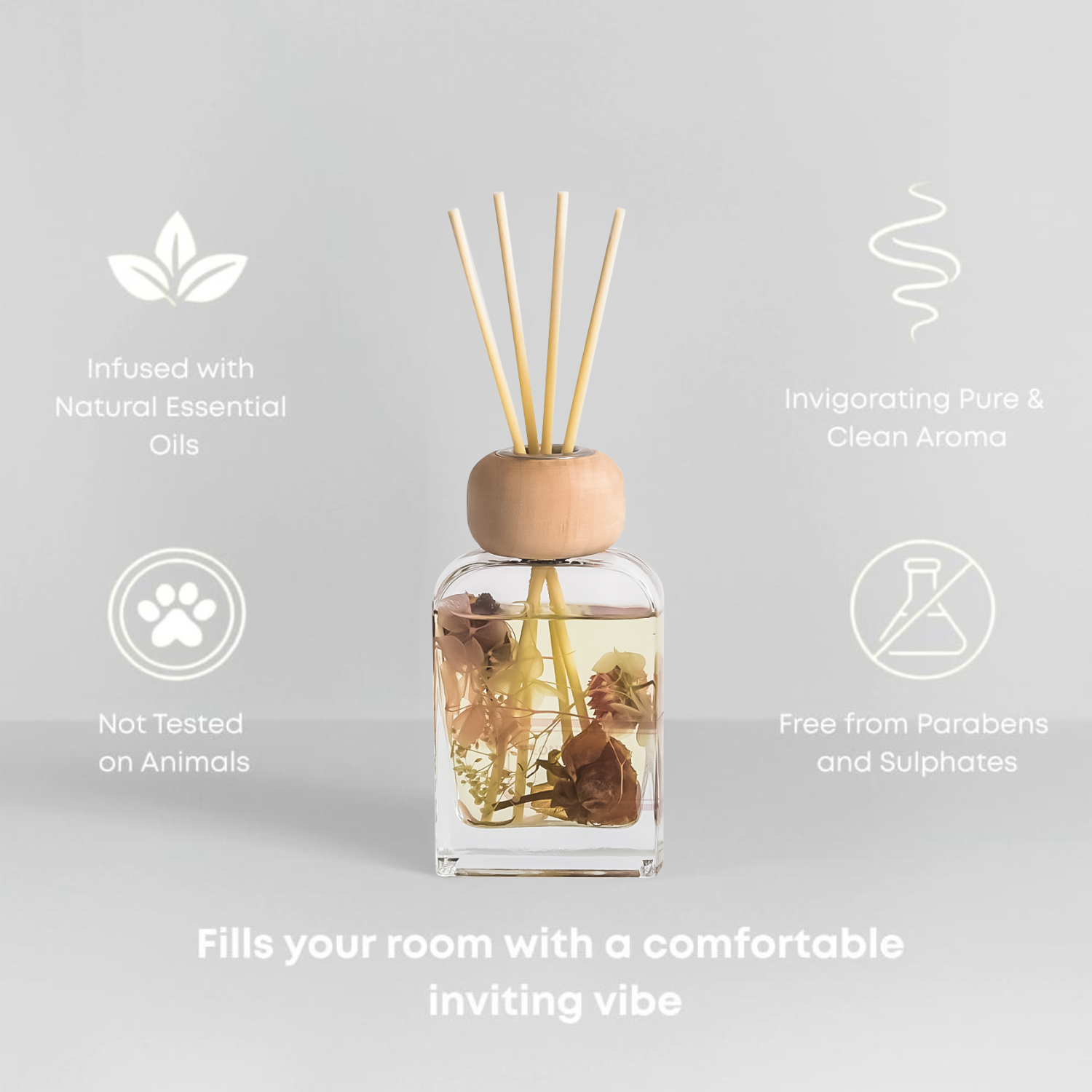 Botanical Flower Reed Diffuser with Wooden Top - Peony & Roses