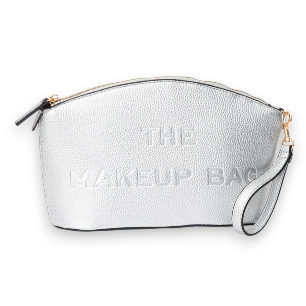 Silver Faux Leather Makeup Bag with "The Makeup Bag" Embossment